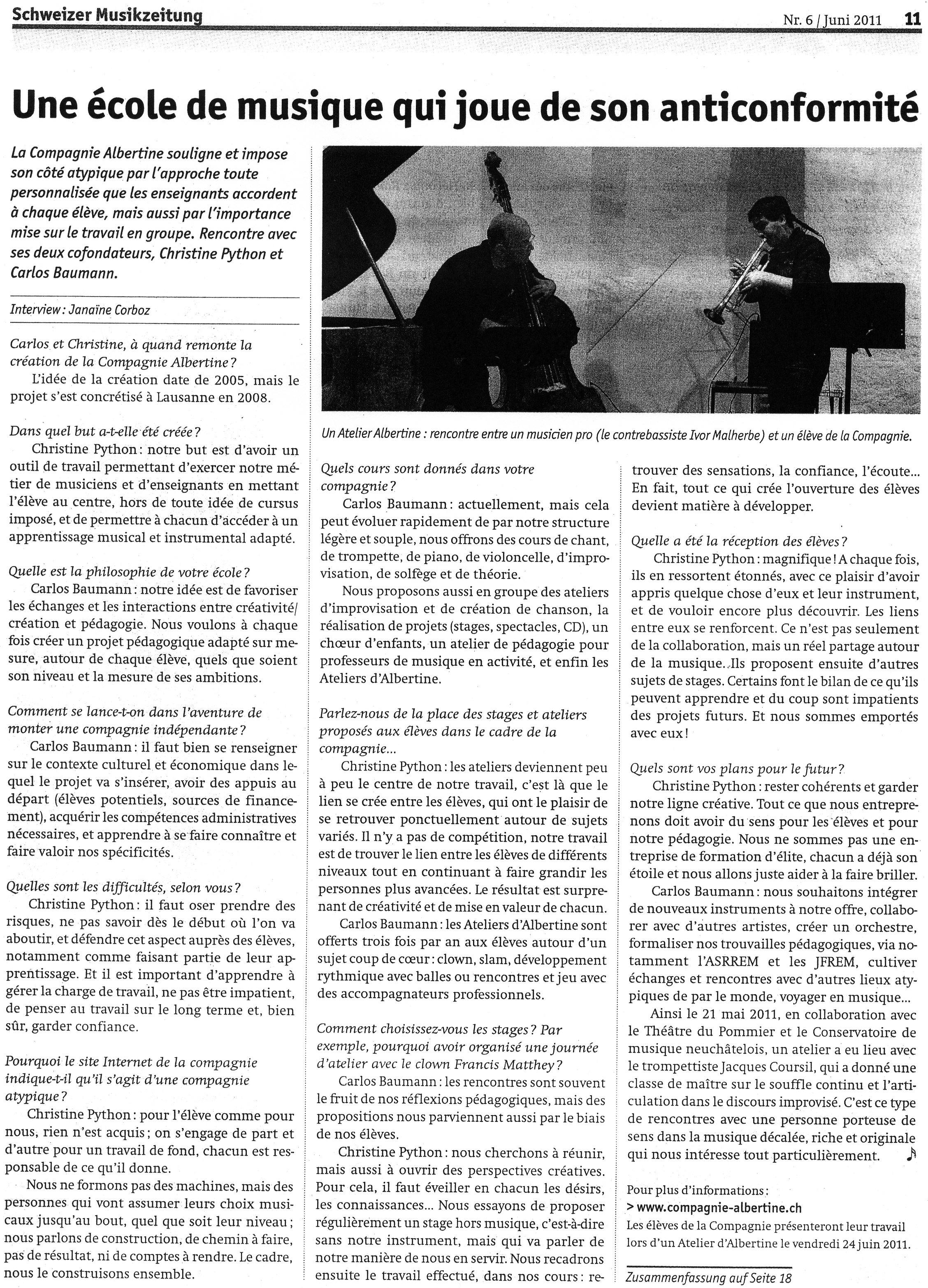 ... et pour en savoir plus sur la Compagnie Albertine : un article paru dans la revue musicale suisse en 2011, toujours d'actualité !
